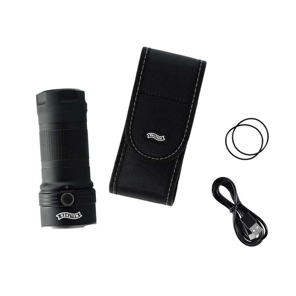 Thanks to the memory function, the device starts at the last used brightness level. A built-in warning signal lets you know when the battery is low. The durable anodized aluminum housing meets the IPX8 waterproof standard, making the flashlight resistant to harsh weather conditions. The mottled surface guarantees a secure grip, even when used with tactical gloves.