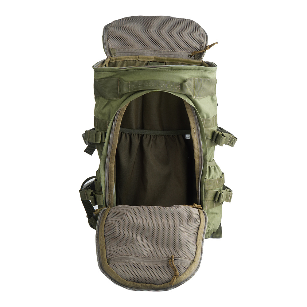 Elastic and adjustable lines in the front allow to carry, for example, jackets or sleeping bags. The AFS carrying system based on a fiberglass frame provides high comfort, while the hip belt helps distribute weight evenly. Made of resilient foam, the soft panels on the back easily absorb moisture and are covered with quick-drying fabric. The backpack is compatible with the MOLLE system, which allows you to attach additional accessories. Thanks to the practical transport handles, it can be easily carried.