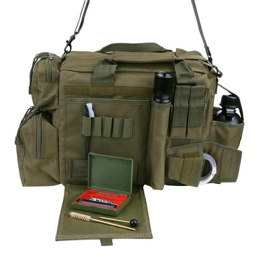 Duża komora główna posiada możliwość podziału na dwie mniejsze, dzięki przegrodzie mocowanej na rzep. Spora, płaska frontowa kieszeń posiada panel rzepowy do spersonalizowania torby. Na tylnej stronie umieszczono cztery kieszenie różnych wielkości. Pod płaską klapą znajduje elastyczne paski na długopisy, nóż składany lub multitoola. Obok niej długa, wąska otwarta kieszeń na takie elementy wyposażenia jak latarka czy tłumik dźwięku. Po prawej stronie znajduje się zasobnik na dwa magazynki a pod nim miejsce na kajdanki zapinane klapką na rzep.