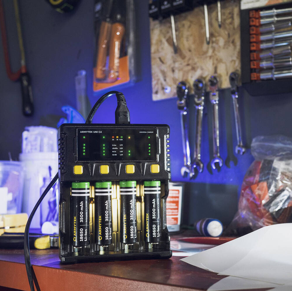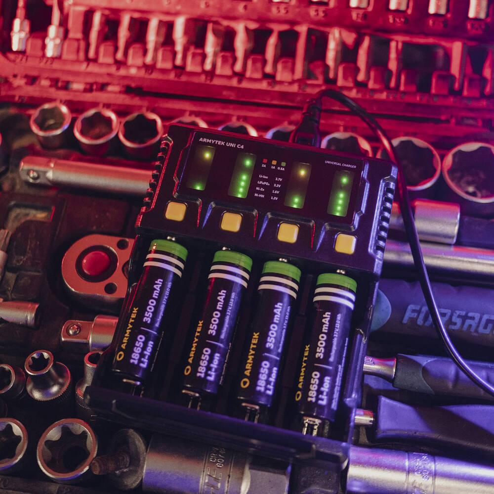 Ładowarka Uni C4 to niezastąpione narzędzie do szybkiego i bezpiecznego ładowania akumulatorów. Może ładować szeroki wachlarz akumulatorów o różnych rozmiarach - średnicy od 8 do 32 mm i długości od 30 do 70 mm. Łatwa w obsłudze, do jej zasilania można wykorzystać prąd zmienny 85-264 V przy pomocy wtyczki sieciowej oraz prąd stały 9-14 V przy pomocy dołączonej ładowarki samochodowej.