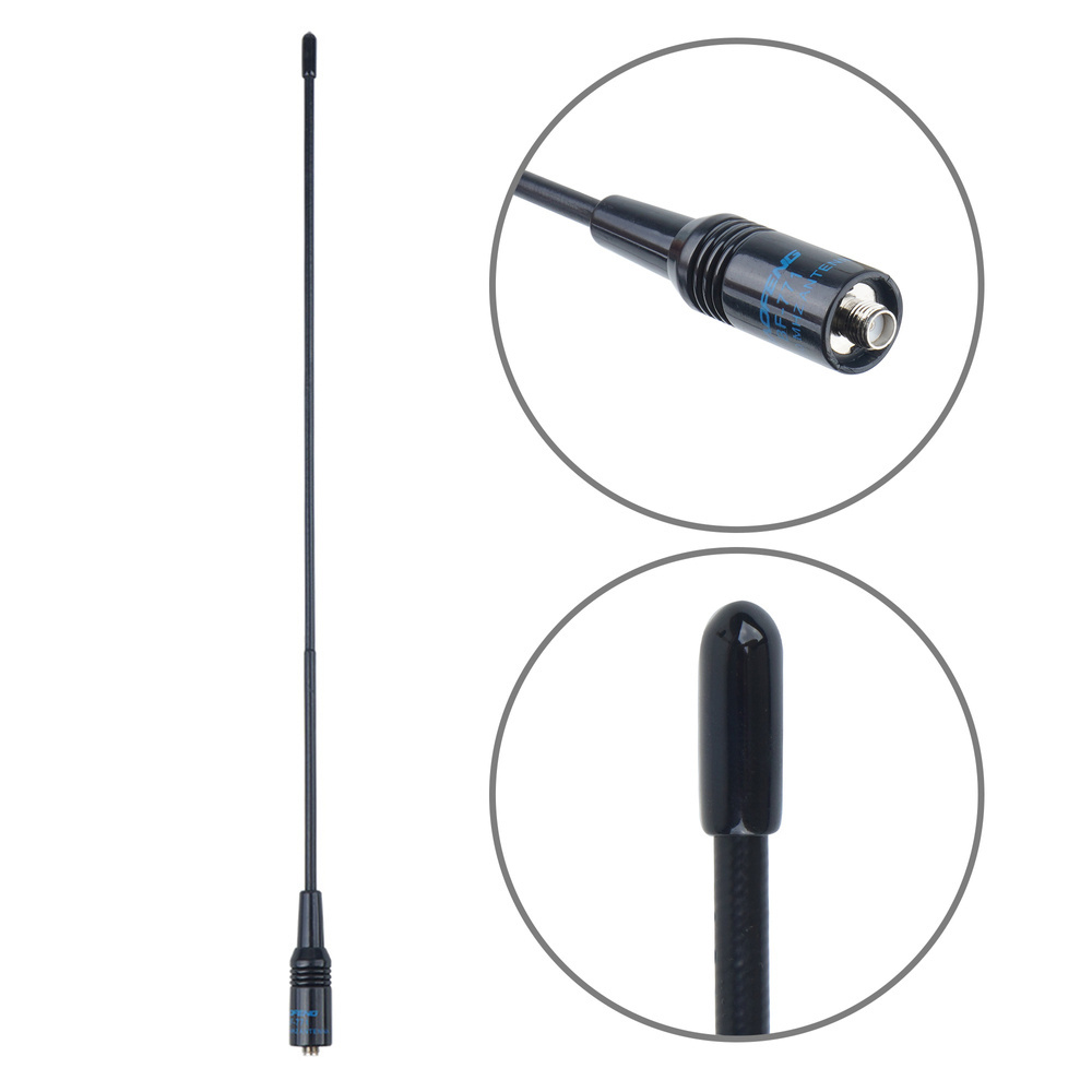 Antena do krótkofalówki wyposażona jest w szerokopasmowe złącze SMA-F. Działa w pasmach 2 m oraz 70 cm (144/430 MHz). Można jej używać również do odbiorników szerokopasmowych.