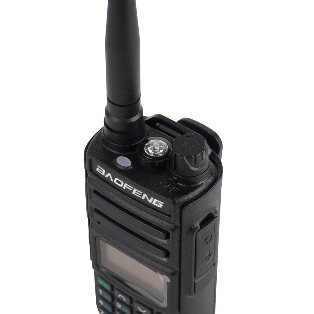 Radiotelefon zrobiony jest z wytrzymałego tworzywa o chropowatej fakturze polepszającej chwyt.