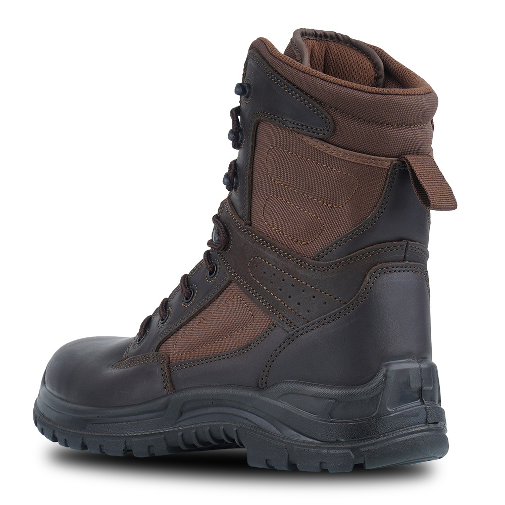 Wysokie buty taktyczne, niezwykle wytrzymałe, a przy tym lekkie. W pełni oddychająca cholewka. Pozbawione metalowych elementów, dzięki czemu nie kolidują z wykrywaczami metalu. Wykonane ze skóry bydlęcej i siatki MESH. Na kostkach wzmocnienia z Cordury. Wkładka dopasowująca się do kształtu stopy. System szybkiego sznurowania. Tłumiąca wstrząsy podeszwa SPARTACUS.