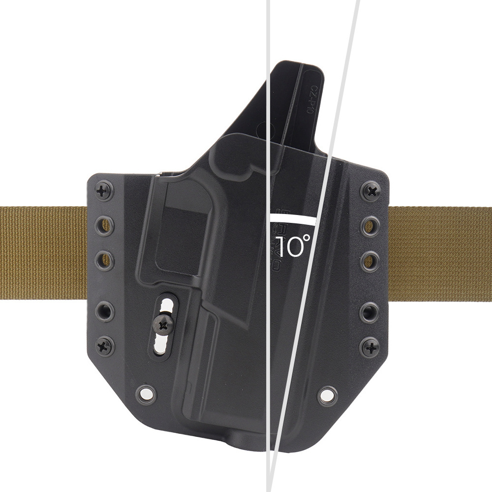 - Kabura umożliwia przenoszenie pistoletu z celownikiem kolimatorowym