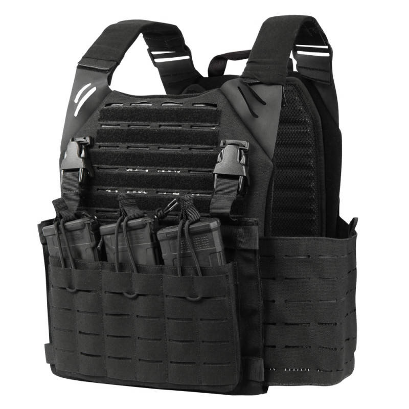 - Kamizelka taktyczna przystosowana do przenoszenia wkładów balistycznych ESAPI M lub L i podobnych, o maksymalnym rozmiarze 25,4 x 33 cm.