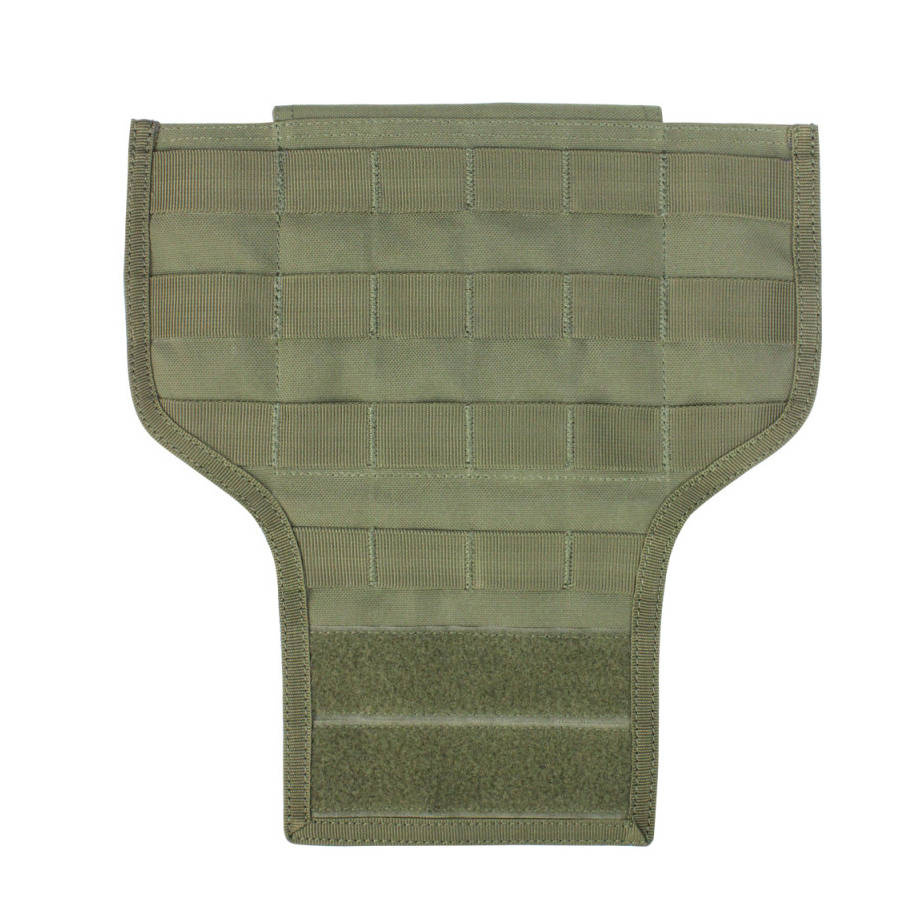 Wykonany został z poliestru 1000D, dzięki czemu jest trwały i odporny na uszkodzenia. Wyposażony w 4 rzędy taśm montażowych, kompatybilnych z systemami MOLLE / PALLS. Na dole znajduję się rzep, który utrzymuję panel w miejscu. Doczepiany do kamizelki za pomocą dwóch troków MOD Strap 4".