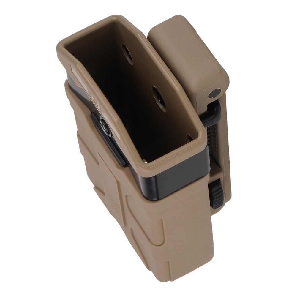 Ładownica doskonale zabezpiecza przenoszony magazynek oraz umożliwia jego szybkie wyciągnięcie. Za trzymanie odpowiada stalowa sprężynująca blaszka wyposażona w gumowy dystanser. W komplecie znajdują się trzy dystansery o różnej grubości, co pozwala na dostosowanie siły potrzebnej do wyjęcia magazynka do wymagań użytkownika.