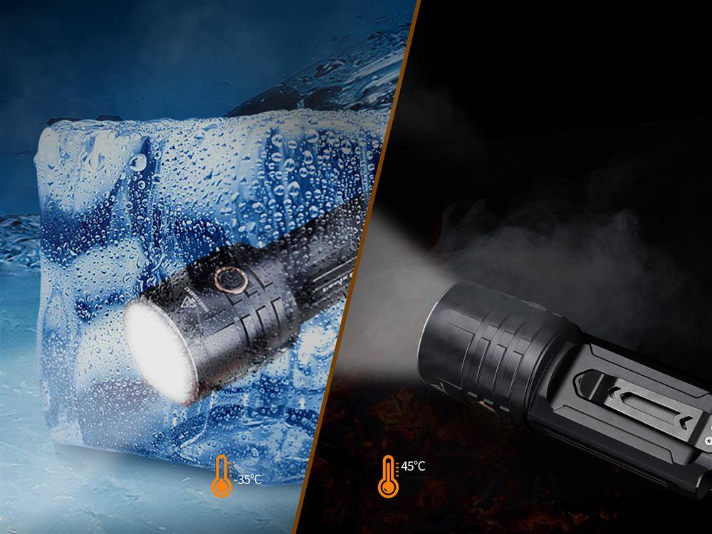 Korpus latarki wykonany został z lekkiego i wytrzymałego aluminium A6061-T HA-III anodowanego na czarny kolor. Co więcej, dzięki zastosowaniu w procesie produkcji wysokiej jakości materiałów, korpus latarki zapewnia wysoką szczelność, spełniając wymagania normy IP68. Latarka jest odporna na pył, kurz, upadek z wysokości, oraz może być zanurzana w wodzie na głębokość do 2 metrów.