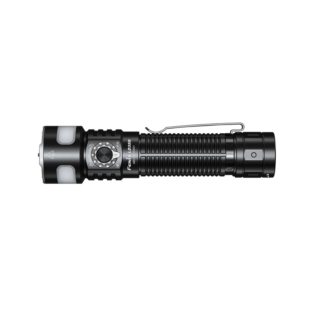Fenix LD35R to latarka taktyczna o aluminiowej konstrukcji zgodnej z klasą szczelności IP68. Głównym źródłem światła jest dioda Luminus SST40 Gen2, generująca strumień o mocy do 1 800 lm i zasięgu do 337 m, co umożliwia efektywne oświetlanie terenu na dużych dystansach. Dodatkowe źródło w technologii COB emituje światło białe, czerwone lub niebieskie, co pozwala dostosować emisję do zastosowania.