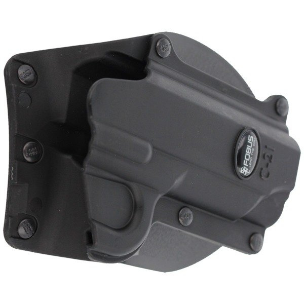 Kabura otwarta Fobus, typ Standard. Do pistoletów Colt: .45 Gov/1911 (bez szyny montażowej). Browning: Hi-Power Mark III 4 & 5mm. FN: High Power, HN Forty-Nine. Kahr: P9, T9, K9, TP9, T40, K40, MK40. Kimber: 1911 Style, 4&5 inch (bez szyny montażowej). Sasilmaz: Klinic 2000 Light. Smith & Wesson: 945. RX18 Polymer wykonana metodą wtryskową z odpornego na zarysowania, udar oraz ekstremalne temperatury tworzywa sztucznego o dużej gęstości.