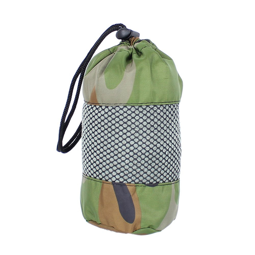 Ręcznik zapakowany jest w worek w kamuflażu woodland z bokiem wykonanym z siatki oraz ściągaczem w górnej części.