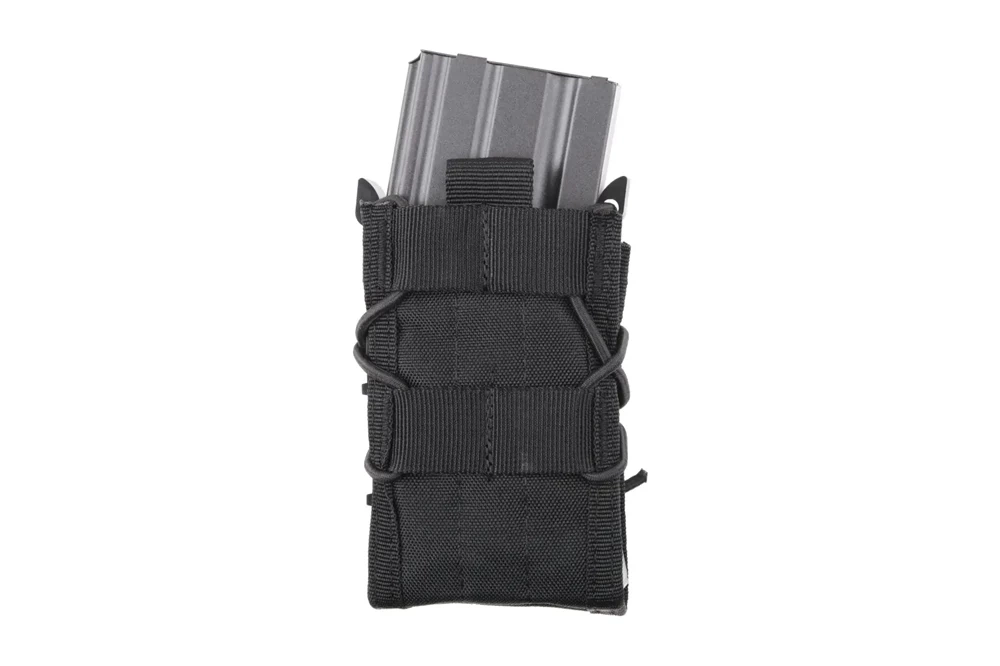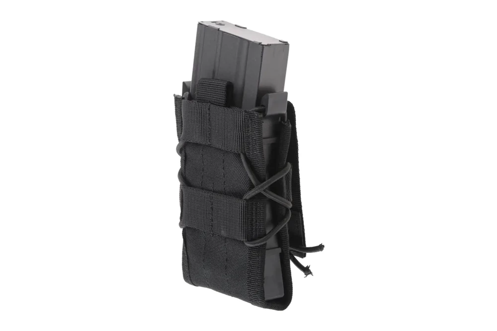 Konstrukcja bez klasycznej klapy, z zabezpieczeniem z gum oraz tworzywa, minimalizuje ryzyko przypadkowego wypadnięcia magazynka, jednocześnie pozwalając na szybkie dobycie. System mocowania MOLLE umożliwia łatwe i pewne przymocowanie ładownicy do oporządzenia np. kamizelki taktycznej lub pasa.