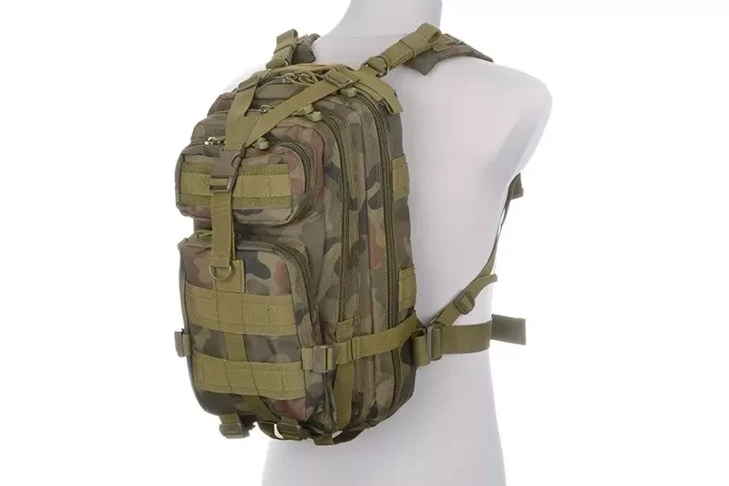 System mocowania MOLLE umożliwia łatwe i szybkie dostosowanie plecaka do indywidualnych potrzeb poprzez montaż dodatkowych akcesoriów. Pojemna komora główna zapinana na zamek błyskawiczny i otwierana jak walizka posiada miejsce na wkład hydracyjny. Dodatkowo plecak posiada 2 mniejsze kieszenie oraz taśmy kompresyjne pozwalające na troczenie dodatkowego ekwipunku np. śpiwora.