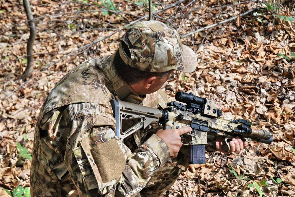 Kołnierz ze stójką zapobiega otarciom podczas wielogodzinnego noszenia kamizelki i zawieszenia karabinu. Velcro dla łatwej personalizacji.