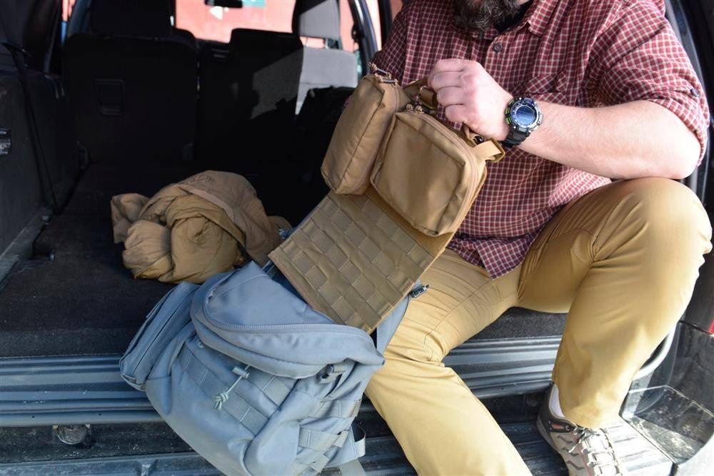 W zależności od preferencji użytkownik może przyczepić na panel ładownice taktyczne, kieszenie lub inne organizery. Na zewnętrznej krawędzi został wszyty ściągacz w formie metki producenta, który umożliwia na szybki demontaż całego panelu bez zbędnego wysiłku. Panel posiada minimalną grubość, która nie pogrubia w widoczny sposób zamocowanej całego zestawu z ładownicą lub innego wyposażenia.