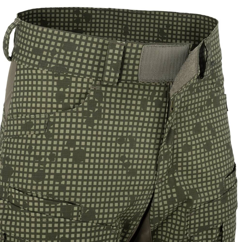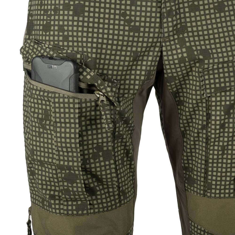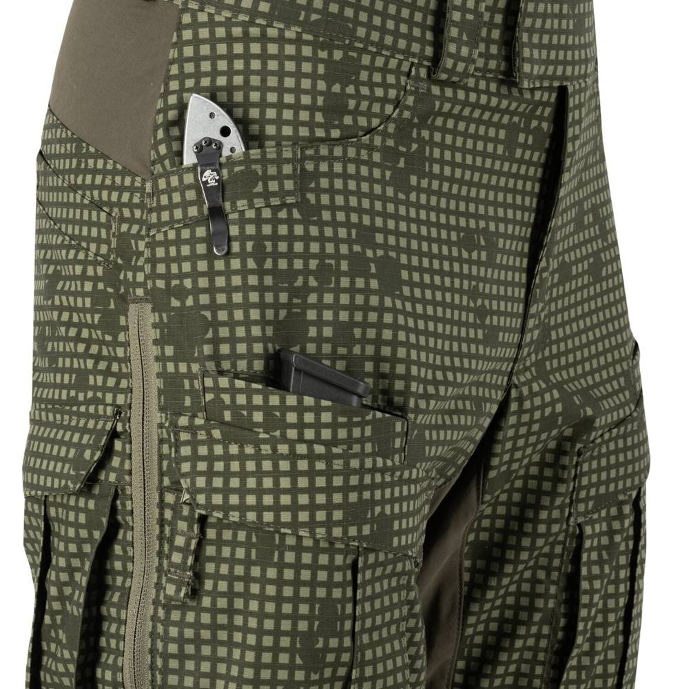 Podstawowym materiałem użytym do produkcji jest Polycotton Stretch Ripstop w różnych kolorach kamuflażu. Zastosowanie takiego materiału zapewnia niezwykłą wytrzymałość, przepuszczalność powietrza i szybkie schnięcie w porównaniu do 100% bawełny. Wszystkie kluczowe miejsca ruchowe jak, zgięcia kolan, krocze, pas otrzymały wstawki z rozciągliwego i oddychającego materiału Versastrech. Dodatkowo okolice kolan zostały wzmocnione wstawkami z Cordury 500D, oraz zamontowano tam kieszenie na wkładki ochronne. Natomiast wszystkie zamki błyskawiczne, to znany i ceniony YKK.