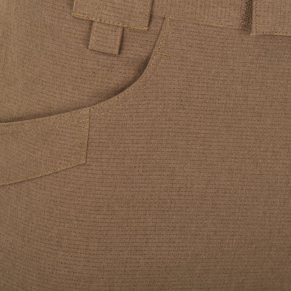 Długa nogawka z możliwością regulacji linką i wzmocnione kolana z przegrodami na miękkie ochraniacze gwarantują bezpieczeństwo w urozmaiconym terenie. Sześć kieszeni uzupełniają pętle na karabinki lub D-Ringi, do których można podpiąć rękawice, minimalizując ryzyko ich zgubienia. Elastyczny pas regulowany na velcro i podwyższony stan spodni po stronie pleców, podnoszą komfort podczas działań wymagających częstej zmiany pozycji.