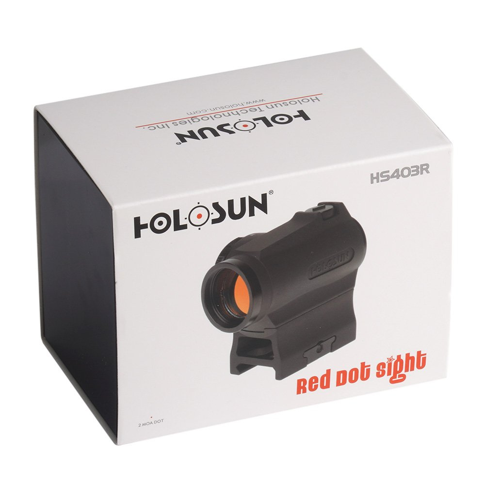 HS403R Red Dot to celownik kolimatorowy z czerwoną kropką celowniczą 2 MOA, który w zestawie posiada dwa montaże: niski i wysoki 1/3 Co-Witness.