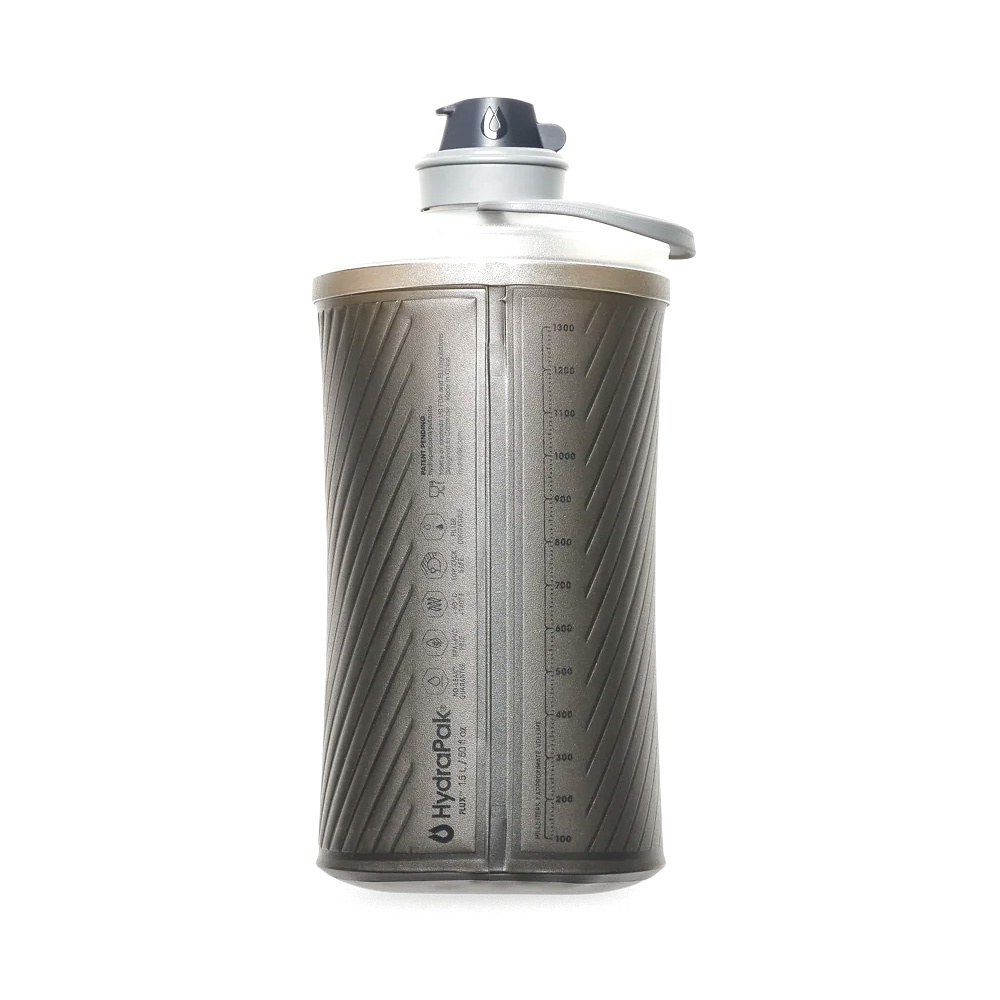 Butelka Flux od firmy HydraPak wykonana z lekkiego i elastycznego materiału TPU. Materiał ten jest bezpieczny do użytku spożywczego, bez dodatku BPA i PVC. Wyposażona została w ergonomiczny ustnik i silikonowy oczko do przenoszenia. Po opróżnieniu butelkę można łatwo złożyć do kompaktowych rozmiarów i zabezpieczyć zintegrowanym oczkiem. Dzięki czemu można ją transportować nawet w kieszeni spodni lub bluzy.