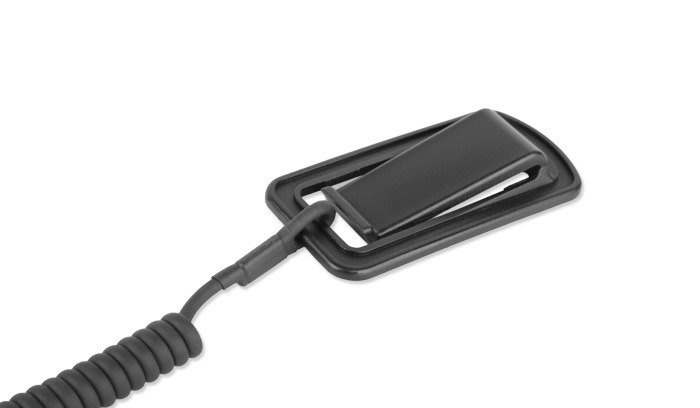 Smycz wyposażona jest w wysokoudarowy, kompatybilny ze standardem MOLLE/PALS klips polimerowy PA6. Umożliwia on szybkie mocowanie na pasach głównych o szerokości od 30 do 50 mm lub bezpośrednio na pasie spodni. Klips posiada funkcję samoistnego blokowania się na pasie co uniemożliwia przesuwanie się uchwytu mocowania.