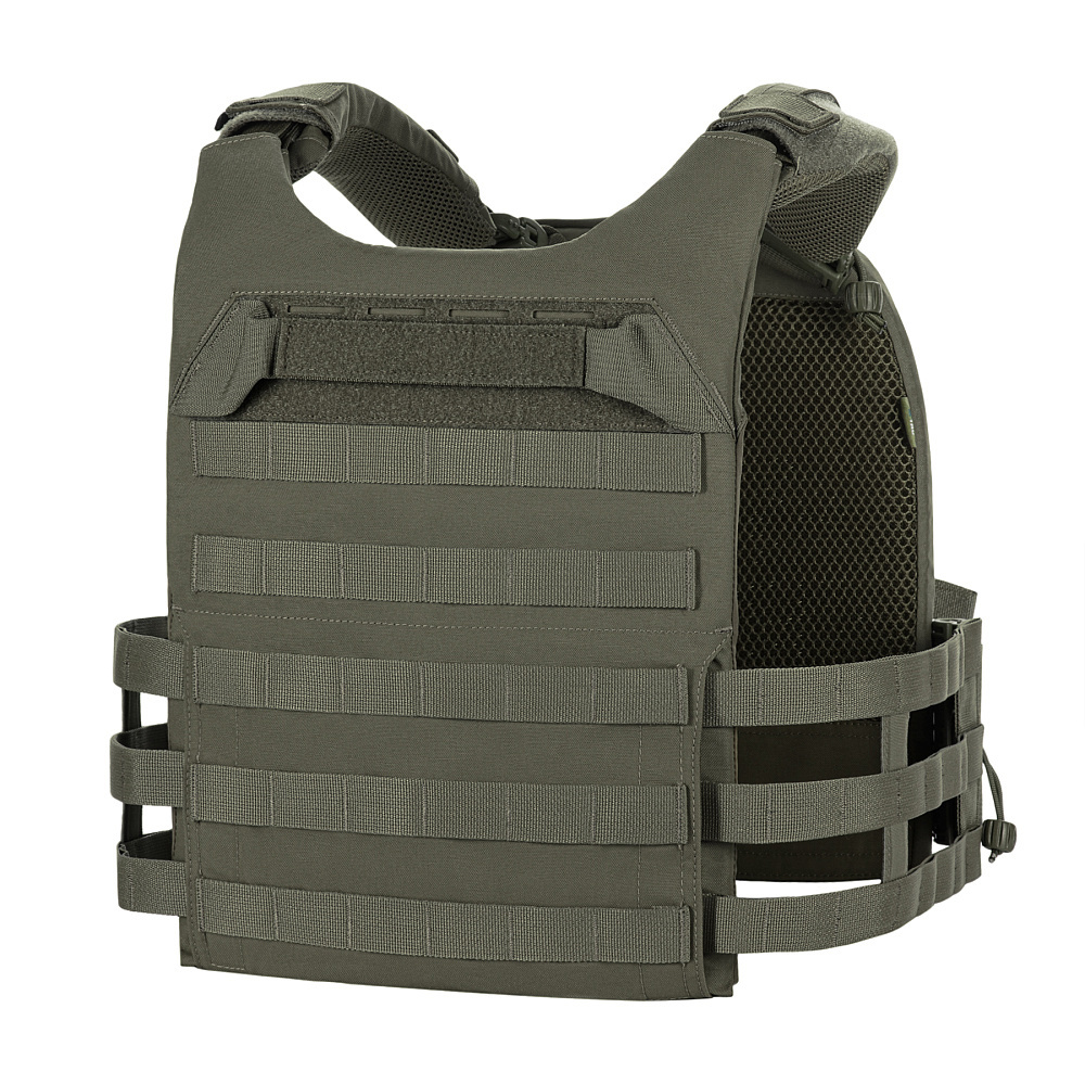 Wewnętrzne panele wentylacyjne zapewniają skuteczną cyrkulację powietrza, zwiększając komfort użytkowania nawet podczas długiego noszenia. Kamizelkę M-Tac przystosowano do przenoszenia płyt balistycznych w standardzie ESAPI w rozmiarze L a system regulacji ramion i pasa pozwala na precyzyjne dopasowanie do sylwetki. Ponadro posiada panel administracyjny, 3 ładownice na karabinki AR/AK oraz uchwyt ewakuacyjny.