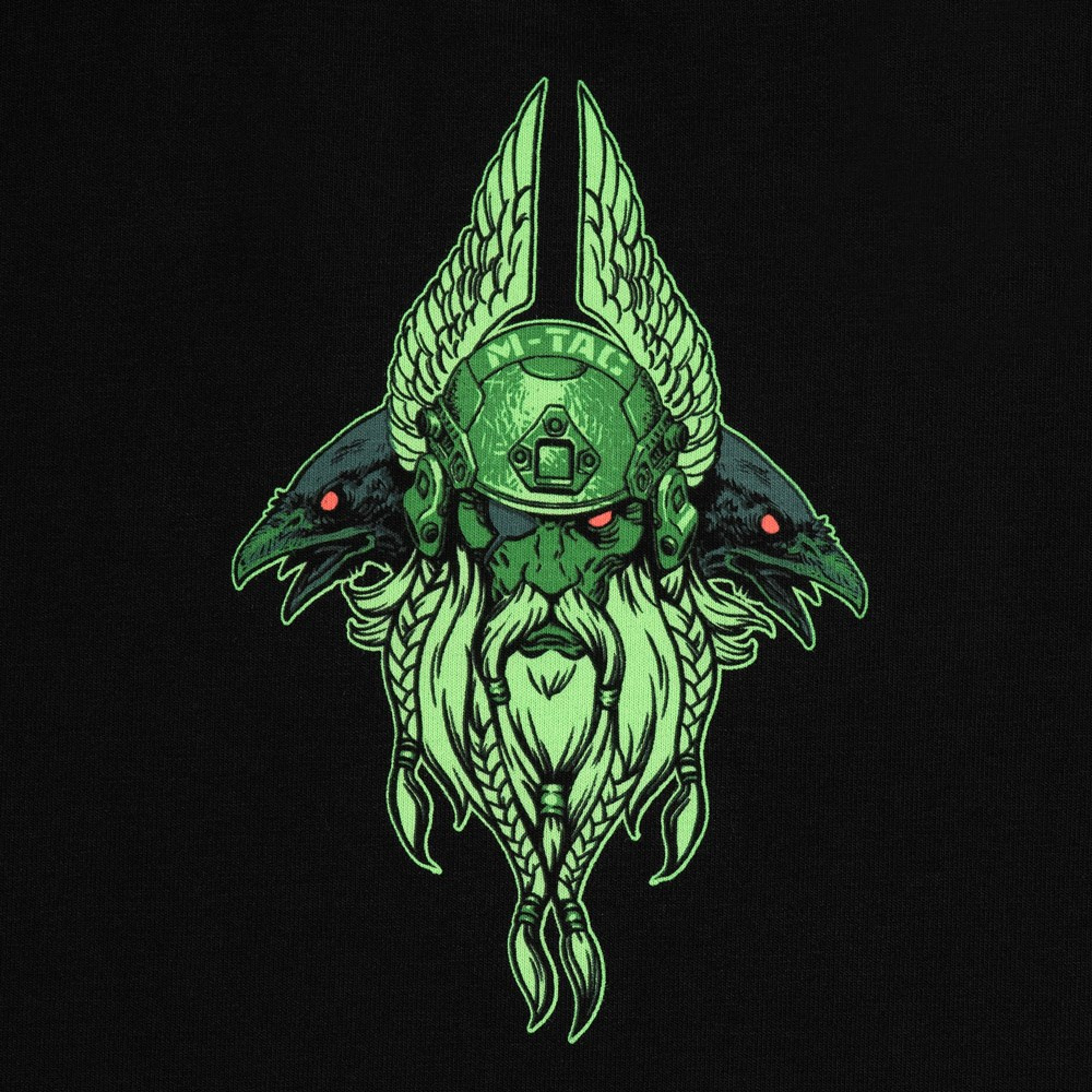 Na piersi koszulki widnieje imponujący nadruk przedstawiający Odyna, boga wojny i mądrości, ubranego w nowoczesny ekwipunek bojowy i hełm z noktowizorem. Towarzyszą mu kruki Hugin i Munin, symbolizujące myśl i pamięć. Nadruk wykonany został przy użyciu odpornych na blaknięcie i spieranie tuszy MagnaColours®. Idealnie sprawdzi się na co dzień, jak i podczas aktywności outdoorowych, doskonale łączy się ze spodniami taktycznymi.