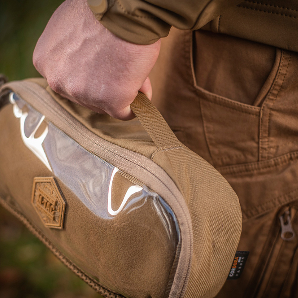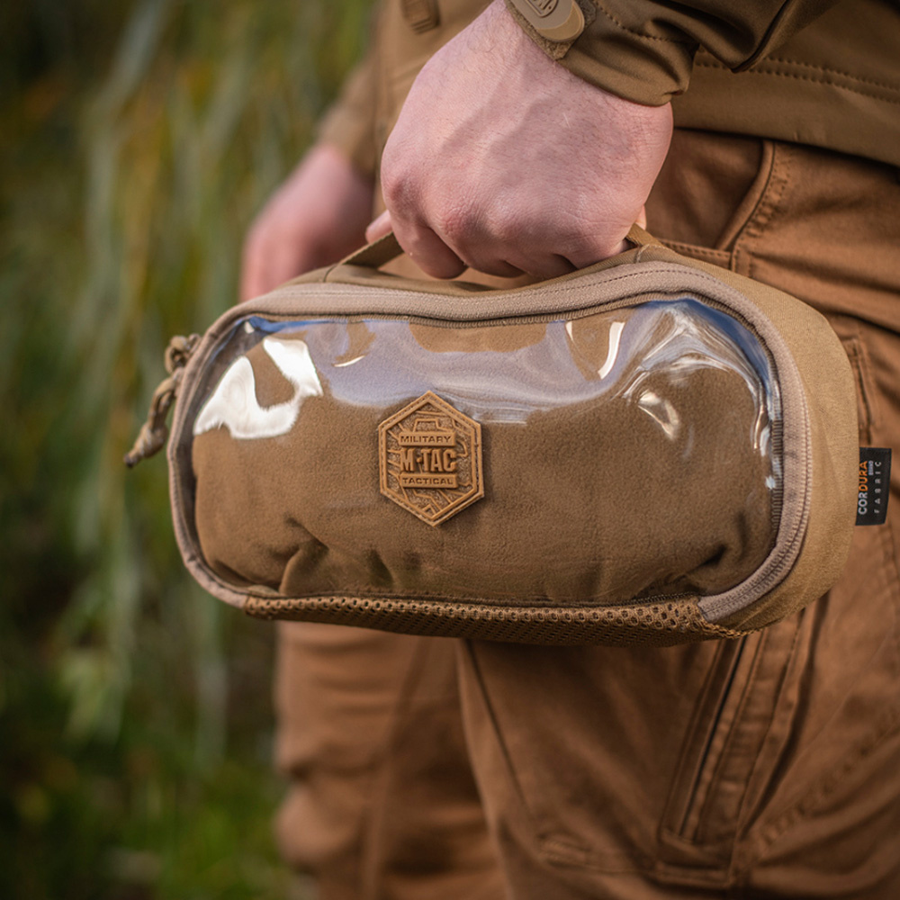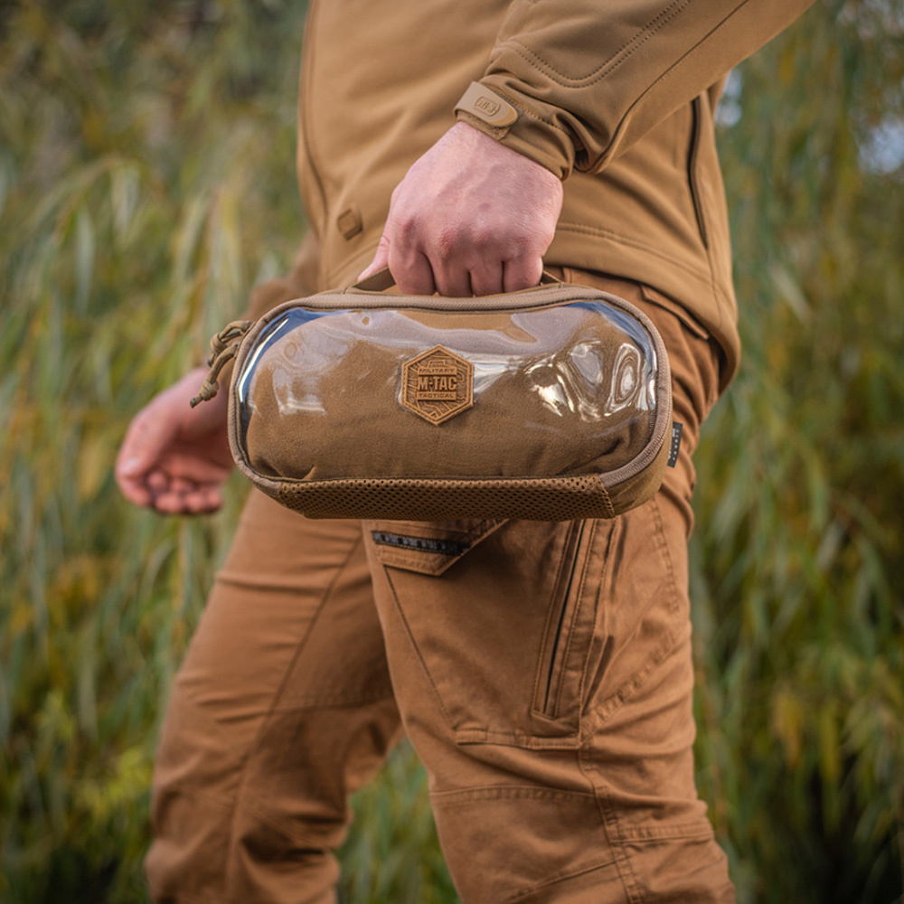 M-Tac Elite Medium Gen.II to średni pokrowiec taktyczny pozwalający na wygodne transportowanie oporządzenia, odzieży lub innych akcesoriów. Jego głównym atutem jest przezroczysta konstrukcja umożliwiająca łatwą identyfikację zawartości. Organizer wyposażony został w praktyczny chwyt transportowy a jego dno wykonano z siateczki.