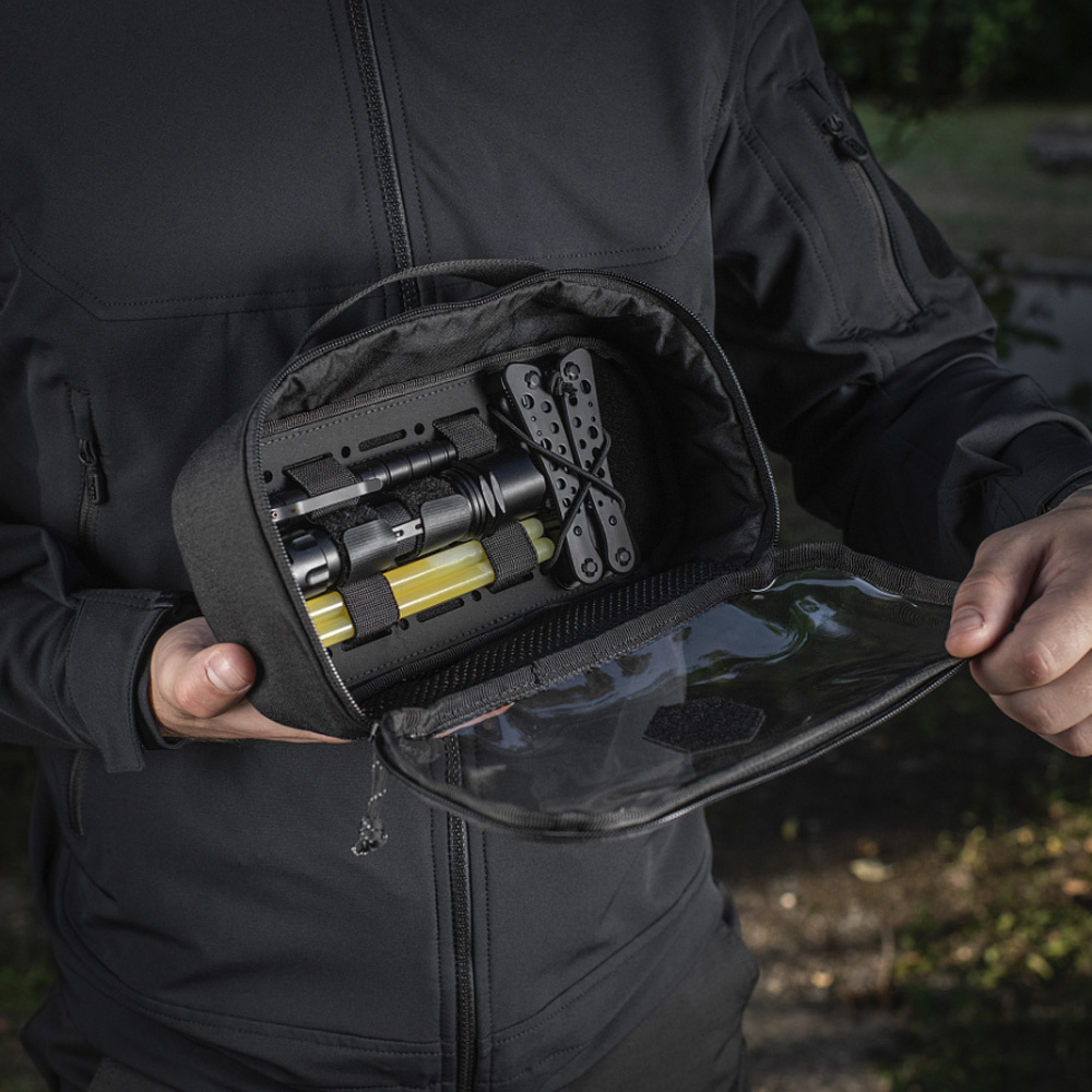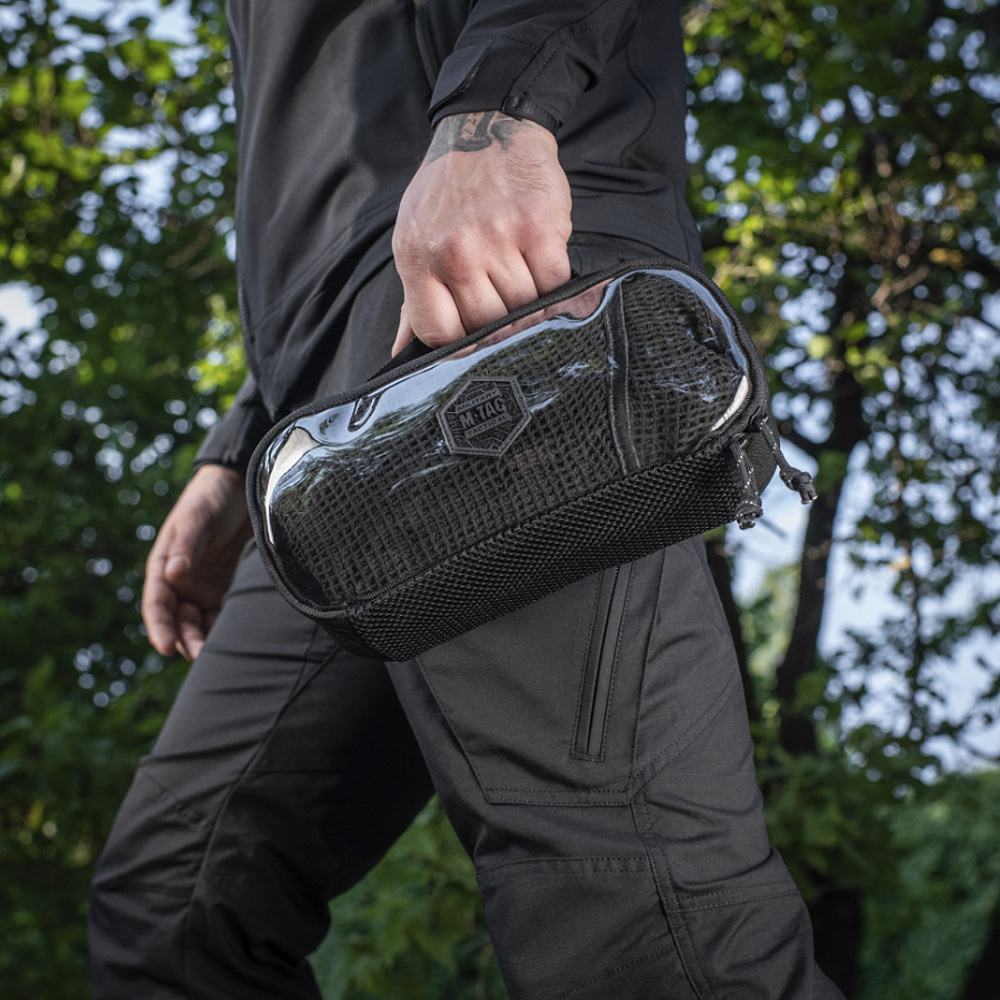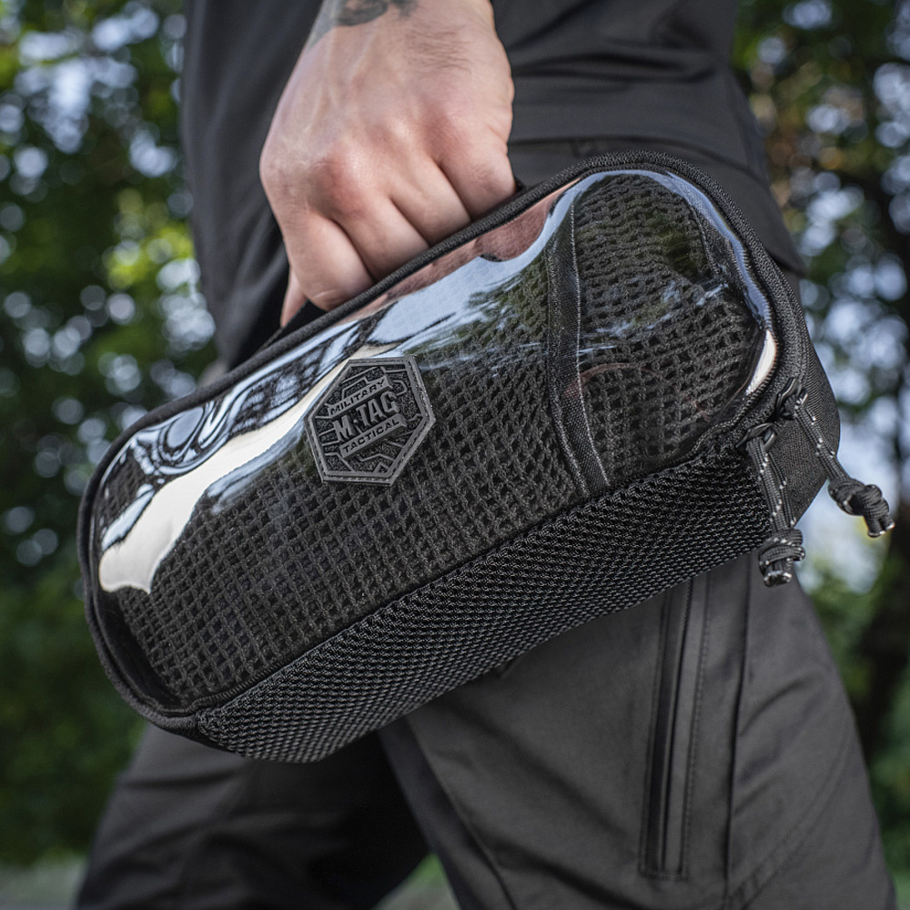 M-Tac Elite Medium Gen.II to średni pokrowiec taktyczny pozwalający na wygodne transportowanie oporządzenia, odzieży lub innych akcesoriów. Jego głównym atutem jest przezroczysta konstrukcja umożliwiająca łatwą identyfikację zawartości. Organizer wyposażony został w praktyczny chwyt transportowy a jego dno wykonano z siateczki.