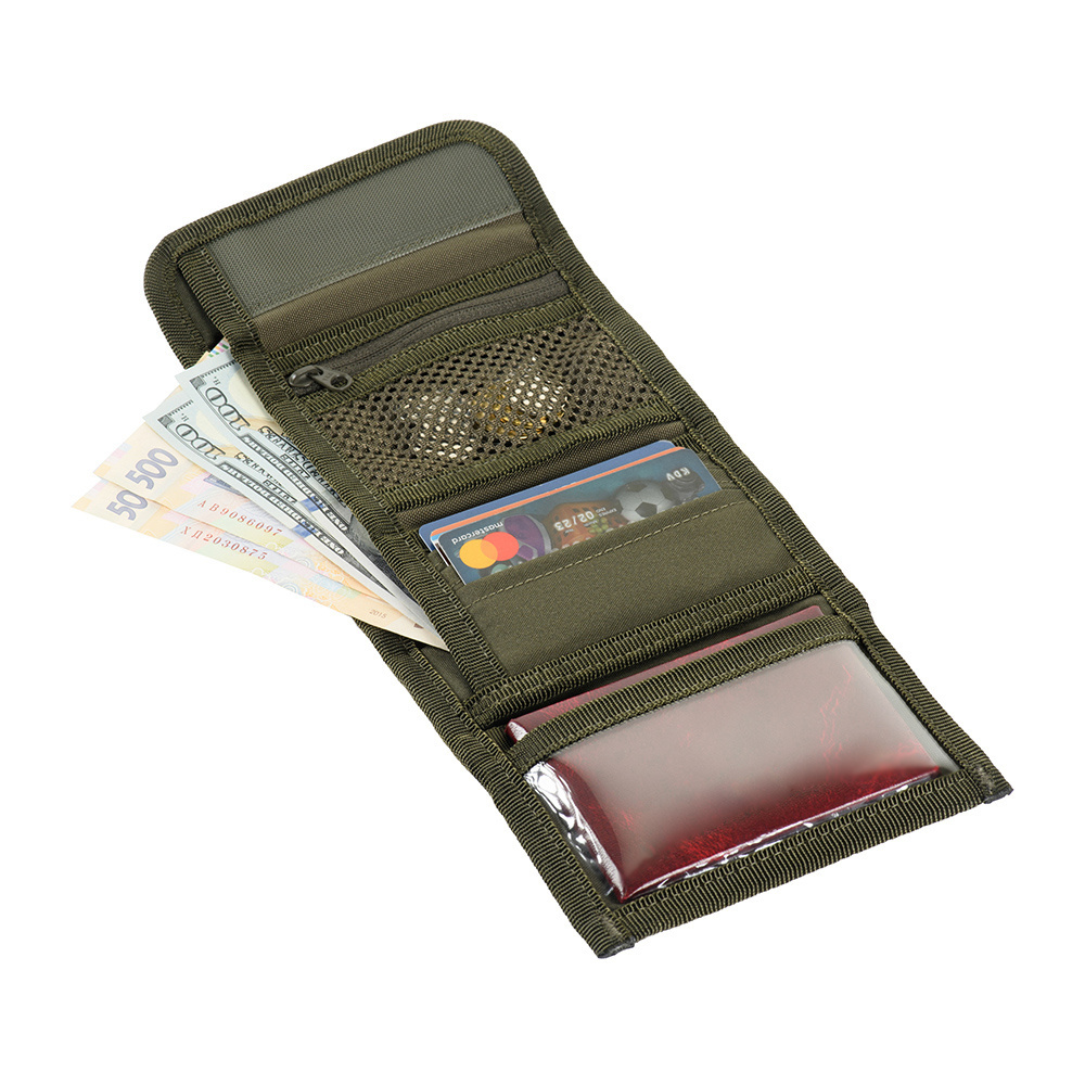 Portfel Elite Gen.II wykonano z gęstej tkaniny Cordura 1000D z heksagonalnymi wzmocnieniami. Materiał ten jest prosty w utrzymaniu czystości, ale też przede wszystkim znany jest ze swojej odporności na przetarcia i wytrzymałości przy dużych obciążeniach. Cała konstrukcja jest kompaktowa i pomimo wielu przegródek nie zajmuje dużo miejsca w kieszeni lub plecaku.