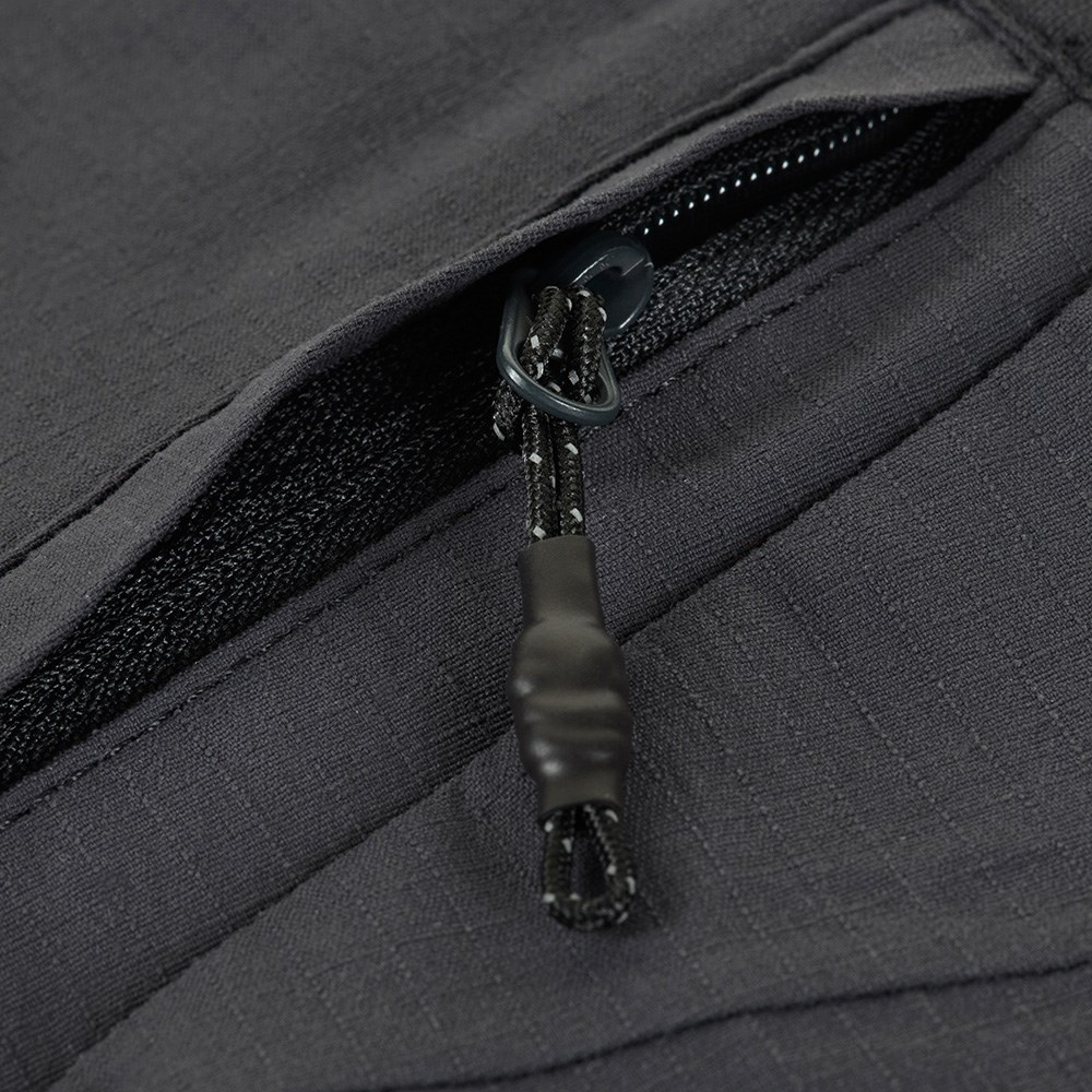 Spodenki posiadają siedem kieszeni, które zostały wzmocnione, aby bez obaw o uszkodzenie materiału móc przenosić przy sobie nóż EDC, czy małą latarkę. Boczne kieszenie typu cargo wyposażono w asymetryczne klapy z rzepem. Fałda rozszerzająca pozwala bez problemu zmieścić w nich nawet większe przedmioty. Wewnętrzna kieszeń została stworzona tak, aby bez problemu pomieścić telefon. Dodatkowo spodenki wyposażono w dwie tylne kieszenie zapinane na zamek.