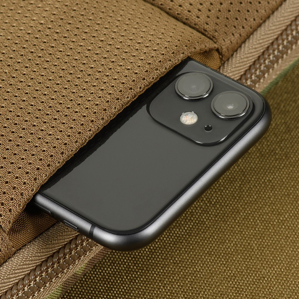 Torba została wykonana z materiałów Cordura 500D i Cordura Hex, co gwarantuje odporność na przetarcia, rozdarcia i działanie wody. Główna komora jest zamykana klapą z rzepem Velcro. Wewnątrz komory znajduje się organizer z elastycznymi pętlami i kieszeniami, idealny na uporządkowanie drobnych przedmiotów, takich jak długopis, nóż, latarka czy multitool. Dodatkowo na klapie znajduje się płaska kieszeń na dokumenty, portfel lub inne drobne akcesoria. Na froncie i z tyłu nerki znajdują się pasy mocujące systemu MOLLE/PALS, umożliwiające przytroczenie kompatybilnych kieszeni lub ładownic.