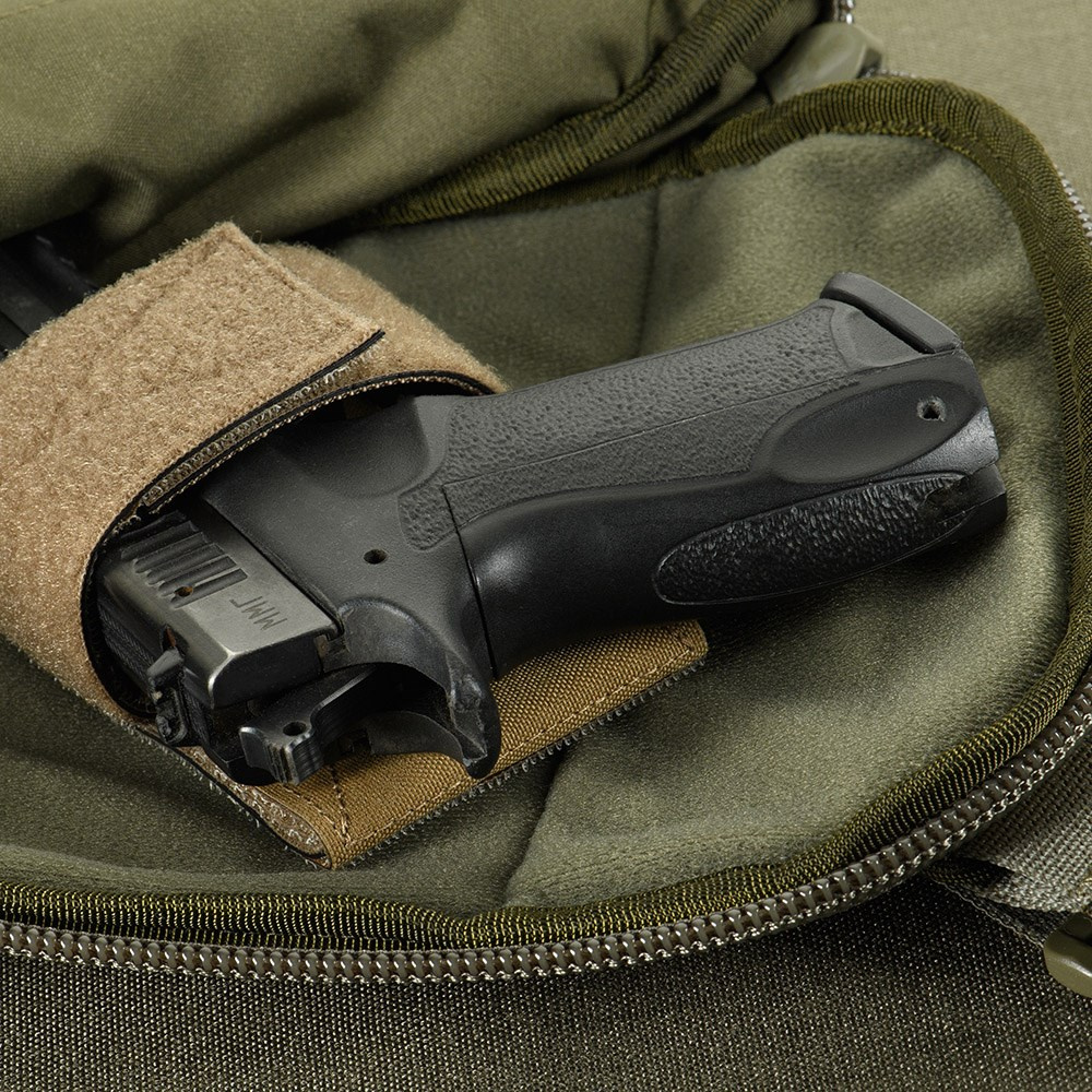 • Wyposażona w przegrodę mieszczącą broń krótką zapewniającą szybki dostęp do pistoletu