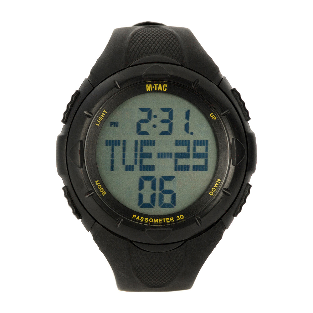 Elektroniczny zegarek taktyczny firmy M-Tac do codziennego użytku, także dla sportowców. Mechanizm kwarcowy został zamknięty w solidnej polimerowej obudowie i zwieńczony wyświetlaczem ciekłokrystalicznym LCD. Duże przyciski pozwolą na obsługę urządzenia nawet w rękawicach taktycznych. Zegarek pozwala na wybór formatu czasu w zakresie 12 lub 24 godzin, a także wprowadzenie daty.