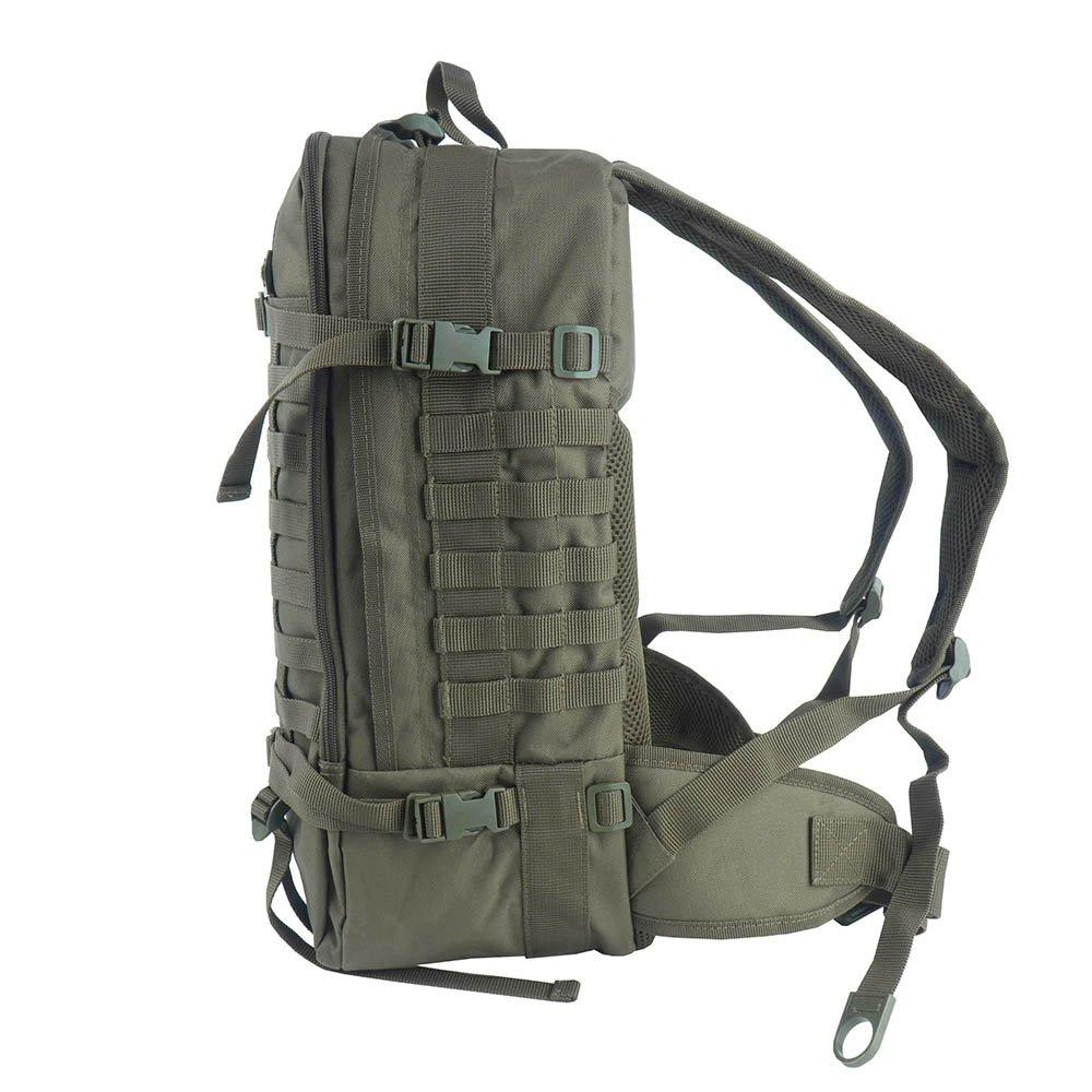 - Solidny uchwyt transportowy i dwie klamry do podpięcia troków lub ładownic