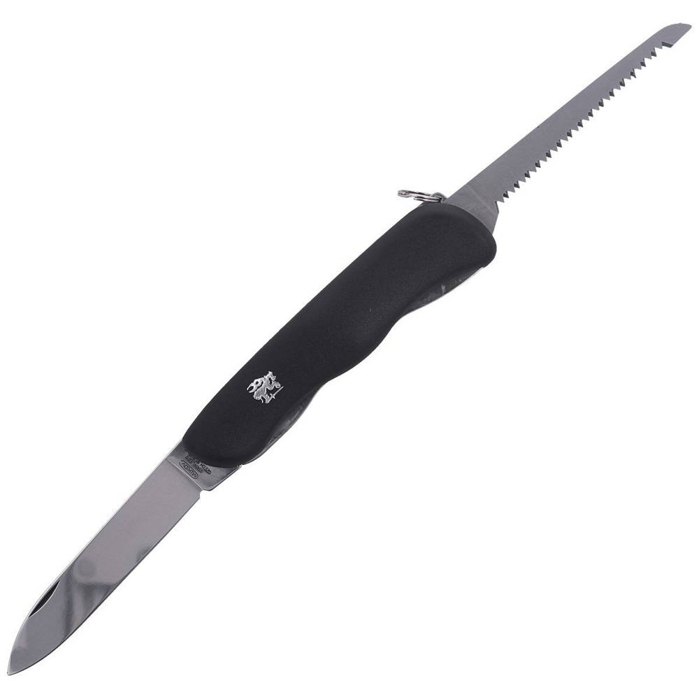 Posiada dwa ostrza wykonane ze stali nierdzewnej AISI 420, gwarantujące trwałość i odporność na korozję. Narzędzie składa się z ostrza głównego o długości 70 mm oraz uniwersalnej piły. Oba narzędzia wyposażono w blokadę liner lock, co zwiększa bezpieczeństwo pracy i zapobiega przypadkowemu złożeniu się w czasie użytkowania.