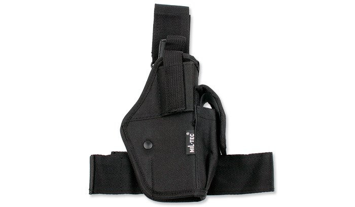 Broń przed wypadnięciem zabezpiecza, zapinany na rzep oraz zatrzask, pasek o regulowanej długości. Ze względu na swe rozmiary, do kabury pasuje większość modeli pistoletów firm Glock, Colt itp.