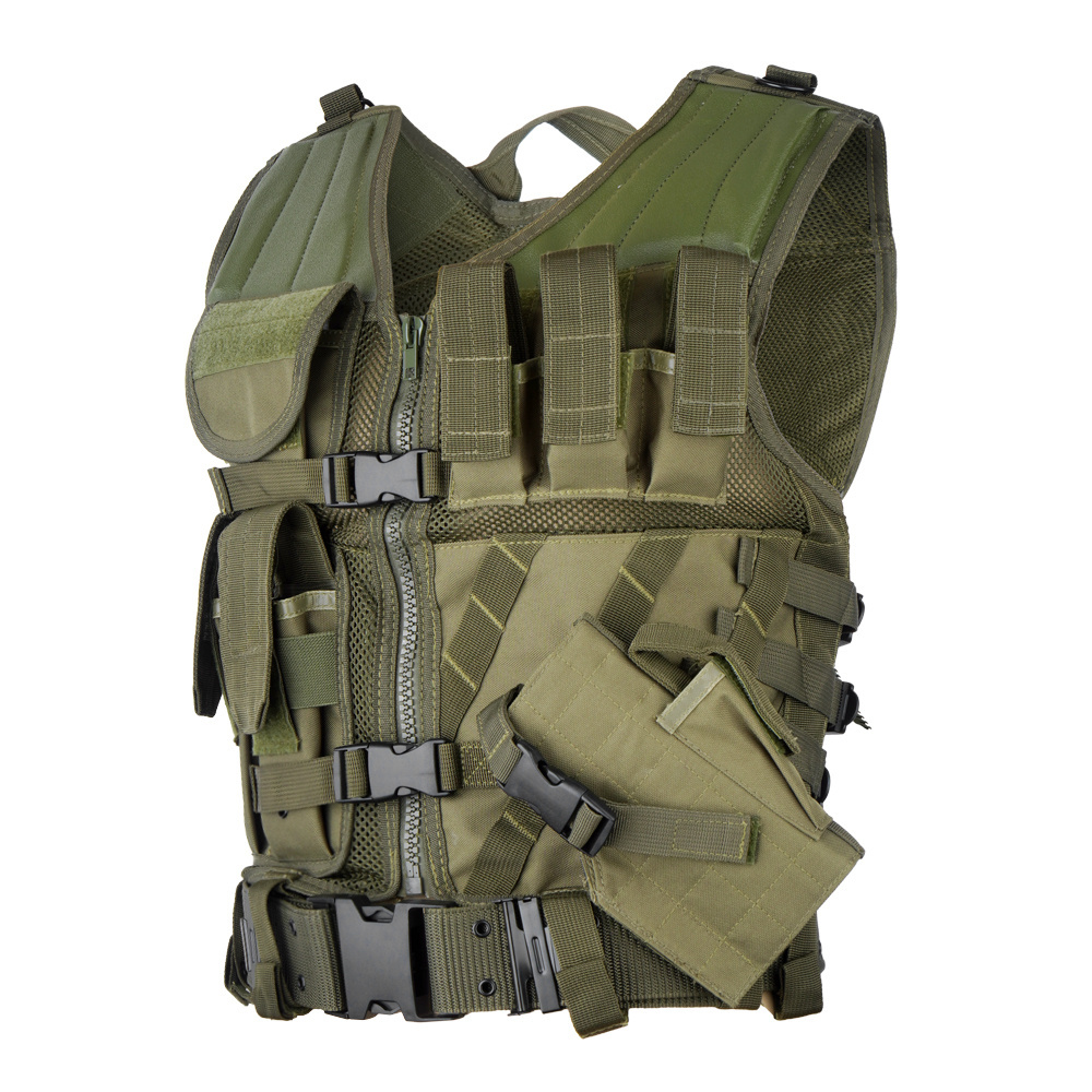 Kamizelka taktyczna USMC Vest wykonana z mocnej, nylonowej siatki odpornej na rozciąganie i uszkodzenia mechaniczne. Zastosowanie siatki zapewnia odpowiednią wentylacje ciała pod kamizelką. Kieszenie są ściągane gumą, która trzyma mocno wszystkie magazynki lub przedmioty i nie pozwala wypaść im podczas dynamicznych akcji. Kabura na kamizelce jest uniwersalna i pasuje do każdego modelu pistoletu.