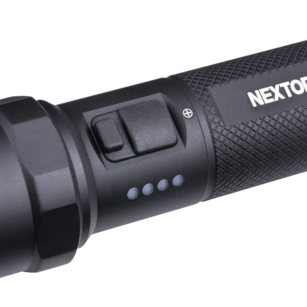 Kompaktowa latarka taktyczna P84 o mocy do 3000 lm od firmy NEXTorch. Jej dodatkową funkcją jest pierścień z małymi diodami LED, które mogą służyć do sygnalizcji emitując czerwono-niebieskie światło. Pozwoli to nie tylko na oświetlenie kluczowych elementów danego miejsca, ale także ostrzeganie poprzez charakterystyczne migające diody.