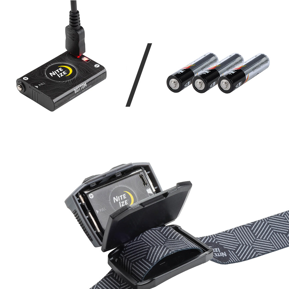 Latarka czołowa Radiant® RH1™ marki Nite Ize. Maksymalna moc 600 lm czyni z niej solidne źródło światła, a sześć trybów pracy pozwala na dopasowanie do działania w różnych warunkach. Czołówka może być zasilana zarówno z wymiennego akumulatora (w zestawie), ładowanego przez kabel USB, jak i trzech baterii AAA. Niewielkie wymiary i waga sprawiają, że może być łatwo przenoszona wplecaku lub kieszeni spodni. Latarka jest również wodoodporna w klasie IPX4 i wstrząsoodporna, co przekłada się na jej trwałość i możliwość użytkowania niezależnie od warunków atmosferycznych.