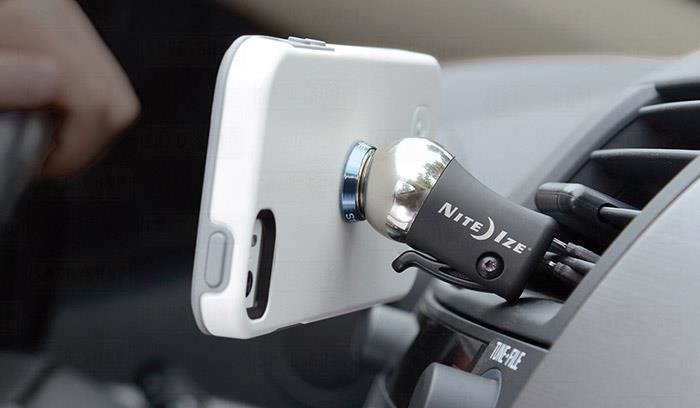 - Steelie Vent Ball Mount umożliwia pewne zamocowanie do kratki otworu wentylacyjnego urządzenia mobilnego z przyklejonym magnesem Steelie Magnetic Phone Socket