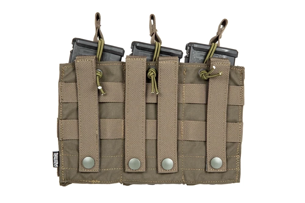 Potrójna ładownica Open Koga wykonana została z wytrzymałej i hydrofobowej tkaniny Aspen 500D. Pomieści trzy magazynki systemu AR lub AK, które w szybki i łatwy sposób zabezpieczyć możemy elastyczną linką typu shock-cord. Zapewnia to ochronę przed przypadkowym zgubieniem ekwipunku oraz zabezpieczającą magazynki przed wypadnięciem podczas dynamicznych konkurencji strzeleckich.
