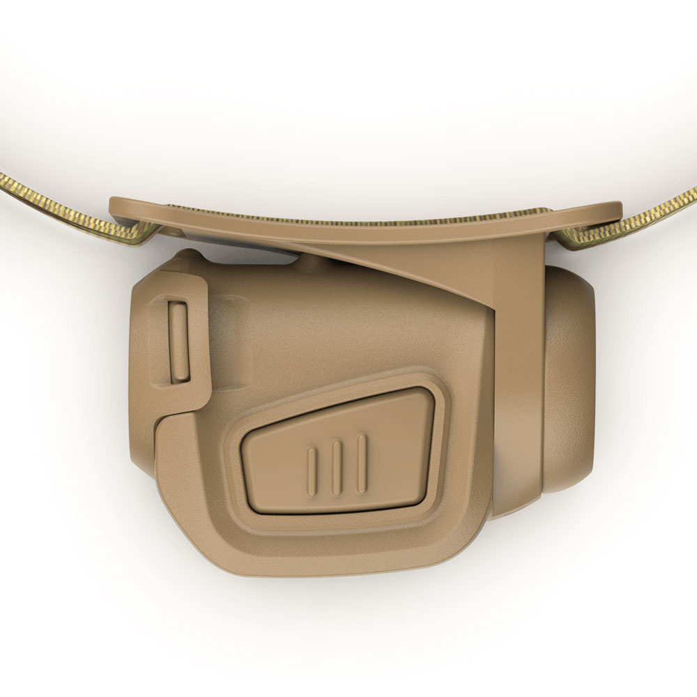 Model ten wyposażony jest w jednoramienny, asymetryczny uchwyt z regulowanym kątem nachylenia głowicy, łatwo dostępny przedział na baterię. Dużych rozmiarów przełącznik umożliwia włączanie poszczególnych diod i trybów pracy. Latarka zawsze zapala się na najniższym trybie co wyklucza możliwość oślepienia użytkownika.
