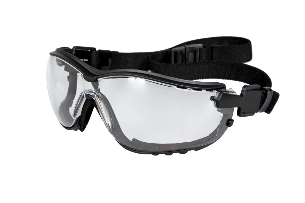 Odporna na zarysowania szybka posiada ochronę 99% UV przed promieniami słonecznymi. Okulary spełniają normę EN 166, co czyni je dobrym wyborem na ochronę oczu przed odpryskami kulek. Niskoprofilowa taśma nagłowna umożliwia wygodne noszenie okularów na nakryciu głowy jak i pod nim.