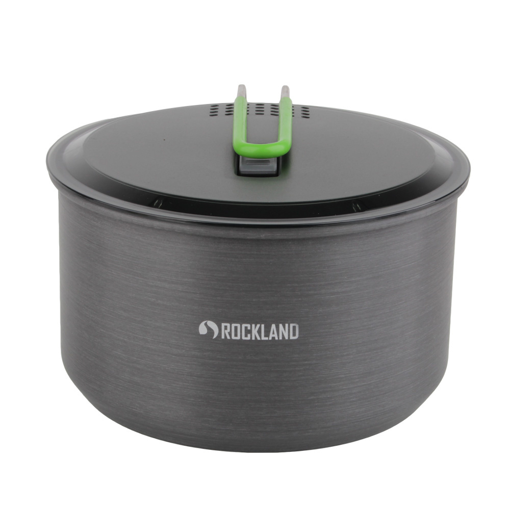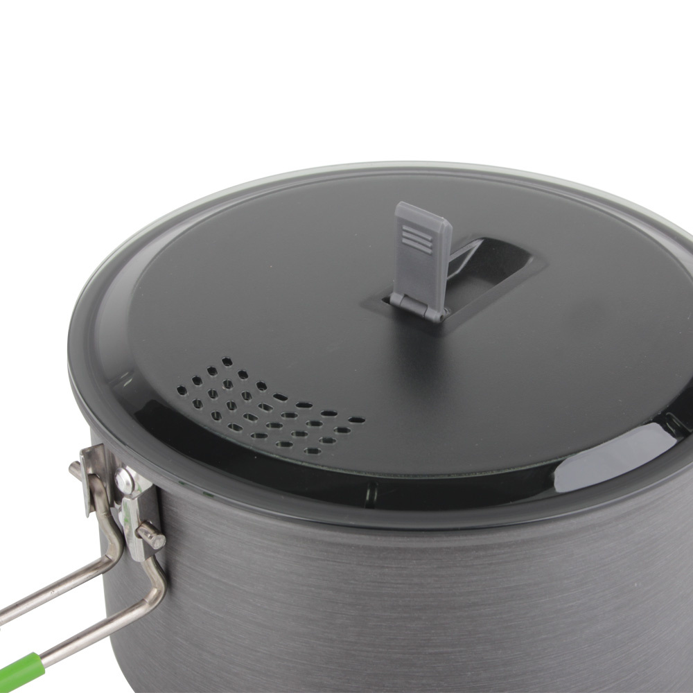 Garnek wykonano z wytrzymałego i lekkiego anodyzowanego aluminium.