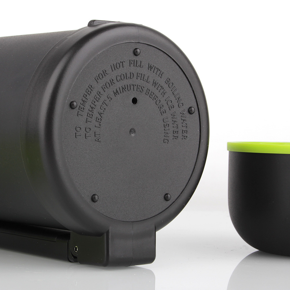 W termosie zastosowano polimerowy korek z blokadą działającym po wciśnięciu.