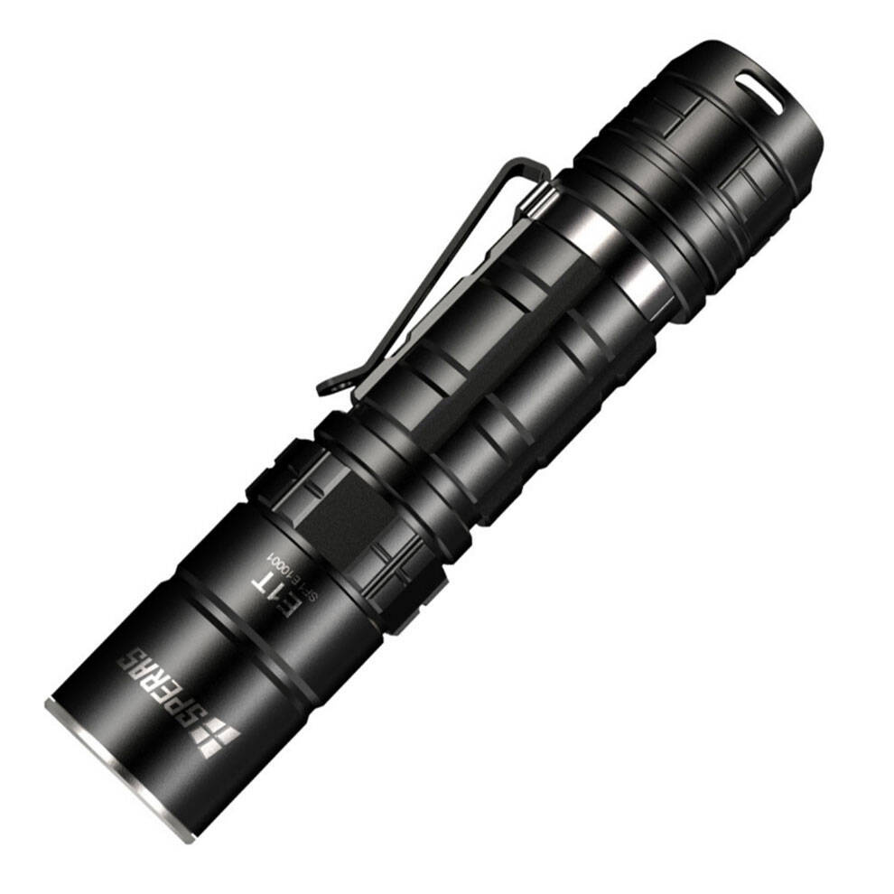 Speras E1T to kompaktowa latarka ręczna o mocy 1700 lm. Dioda Luminus SST40 zapewnia silny strumień światła o zasięgu nawet do 284 m. Latarka posiada dwa tryby pracy w tym stroboskopowy. Może być zasilana wymiennym akumulatorem 18650 o pojemności 2600 mAh lub dwiema bateriami CR123A. Idealnie sprawdzi się w EDC.