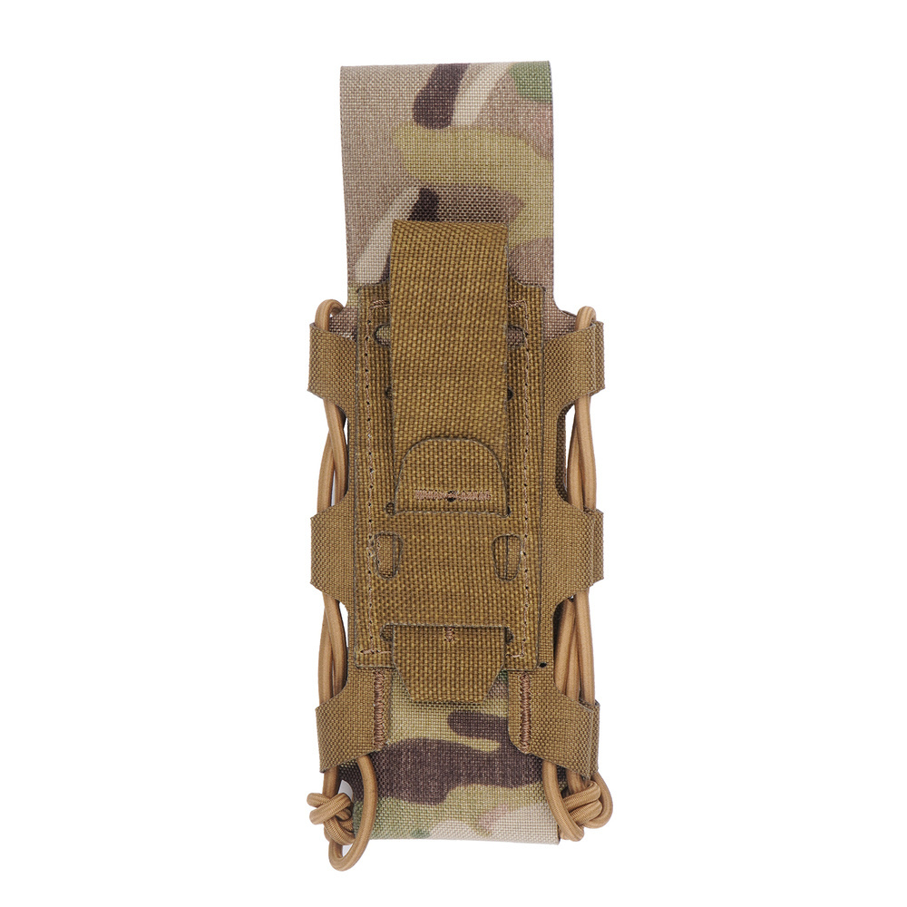Wykonana z wytrzymałej Cordury kieszeń na opaskę uciskową. Zapinana na panel z rzepem. Elastyczne ściągacze dociskają zawartość i zabezpieczają ja przed wypadnięciem w trakcie manewrów. Przeznaczona do montażu na kamizelkach taktycznych i pasach w systemie MOLLE. W zestawie znajduje się adapter w postaci panelu rzepowego, który umożliwia zamocowanie jej w pionie lub poziomie.