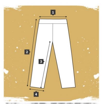 RozmiarObwód w pasie (cm)Szerokość nogawki (cm)Długość zewnętrzna nogawki (cm)Długość wewnętrzna nogawki (cm)